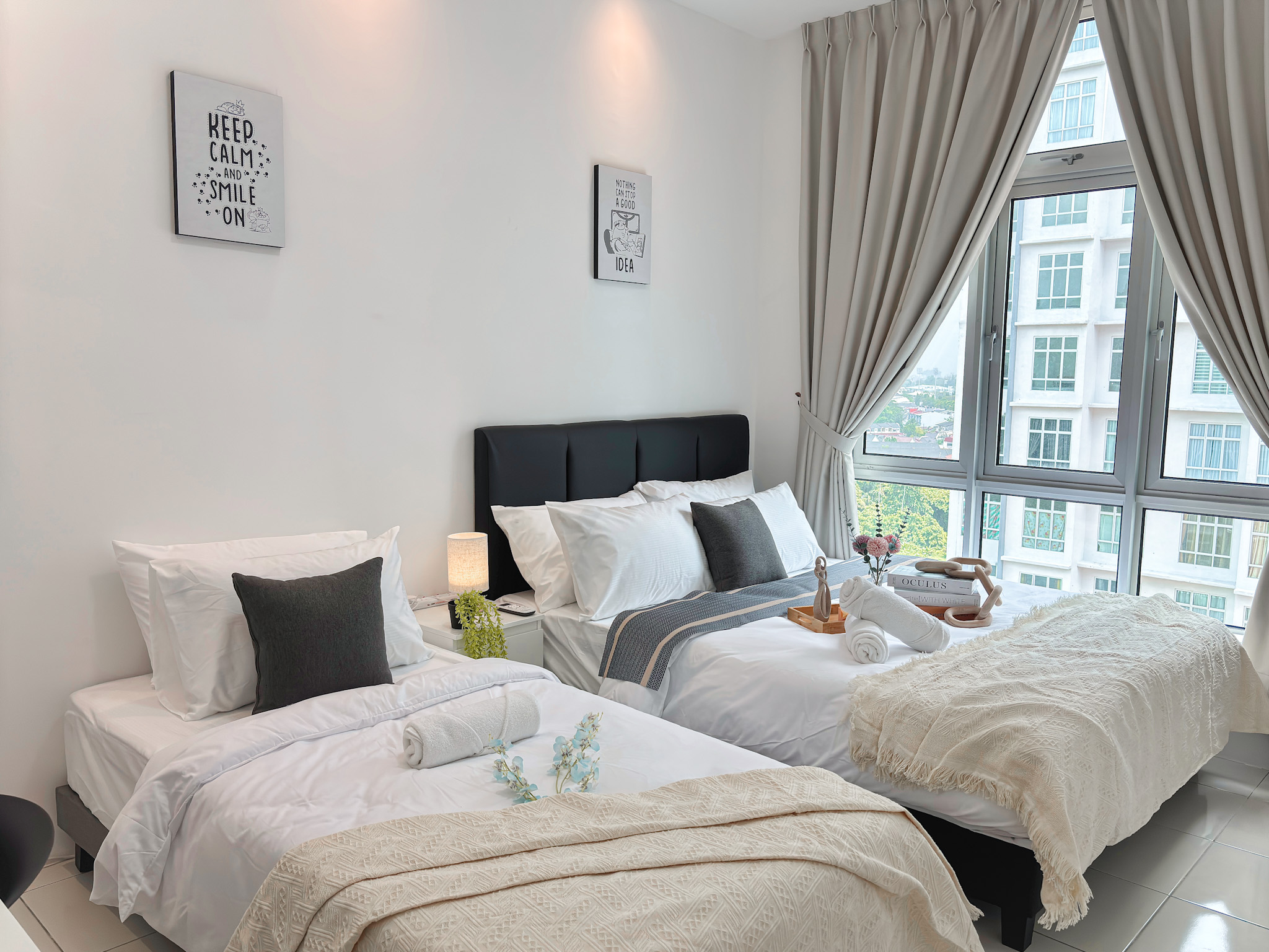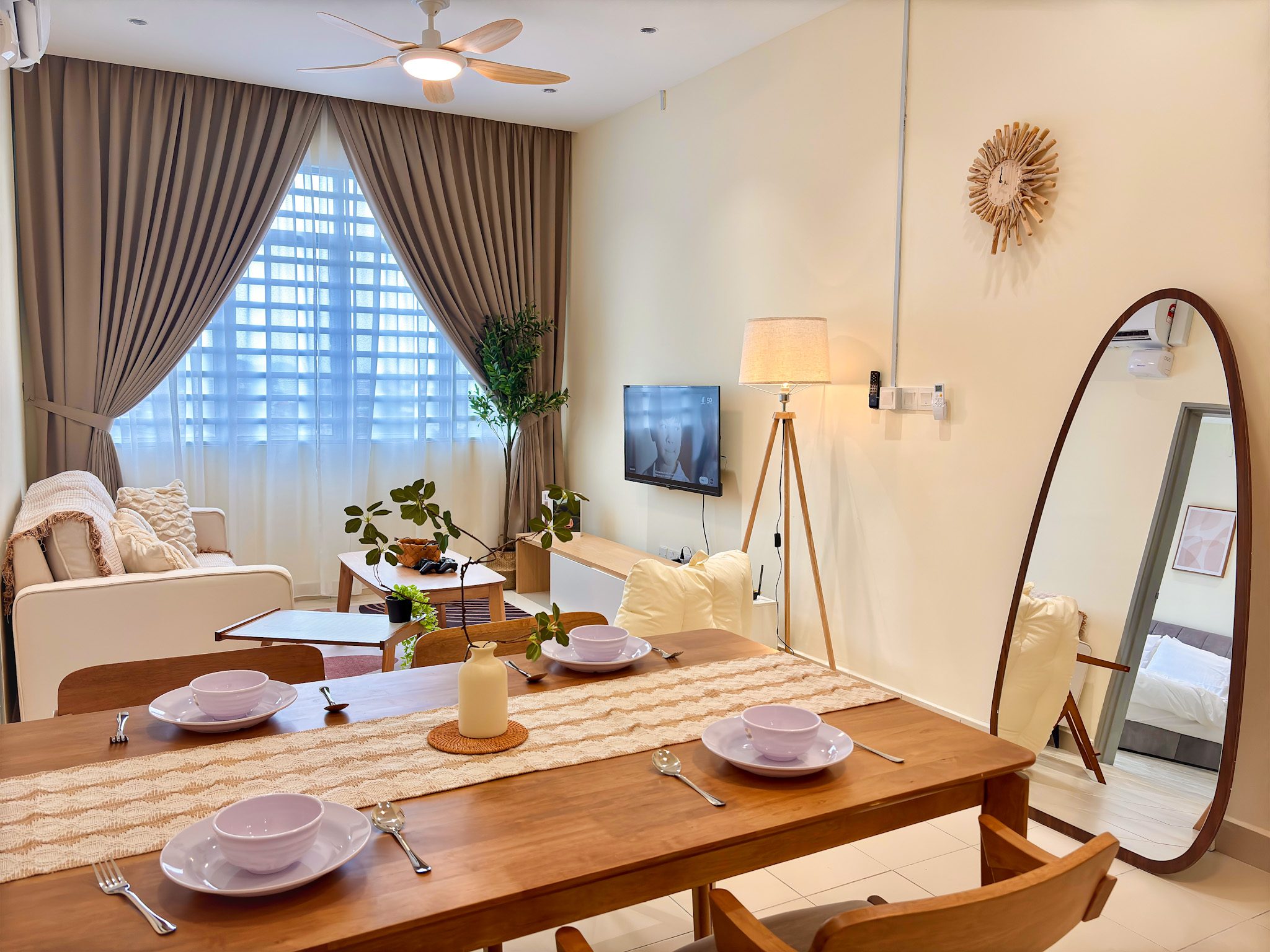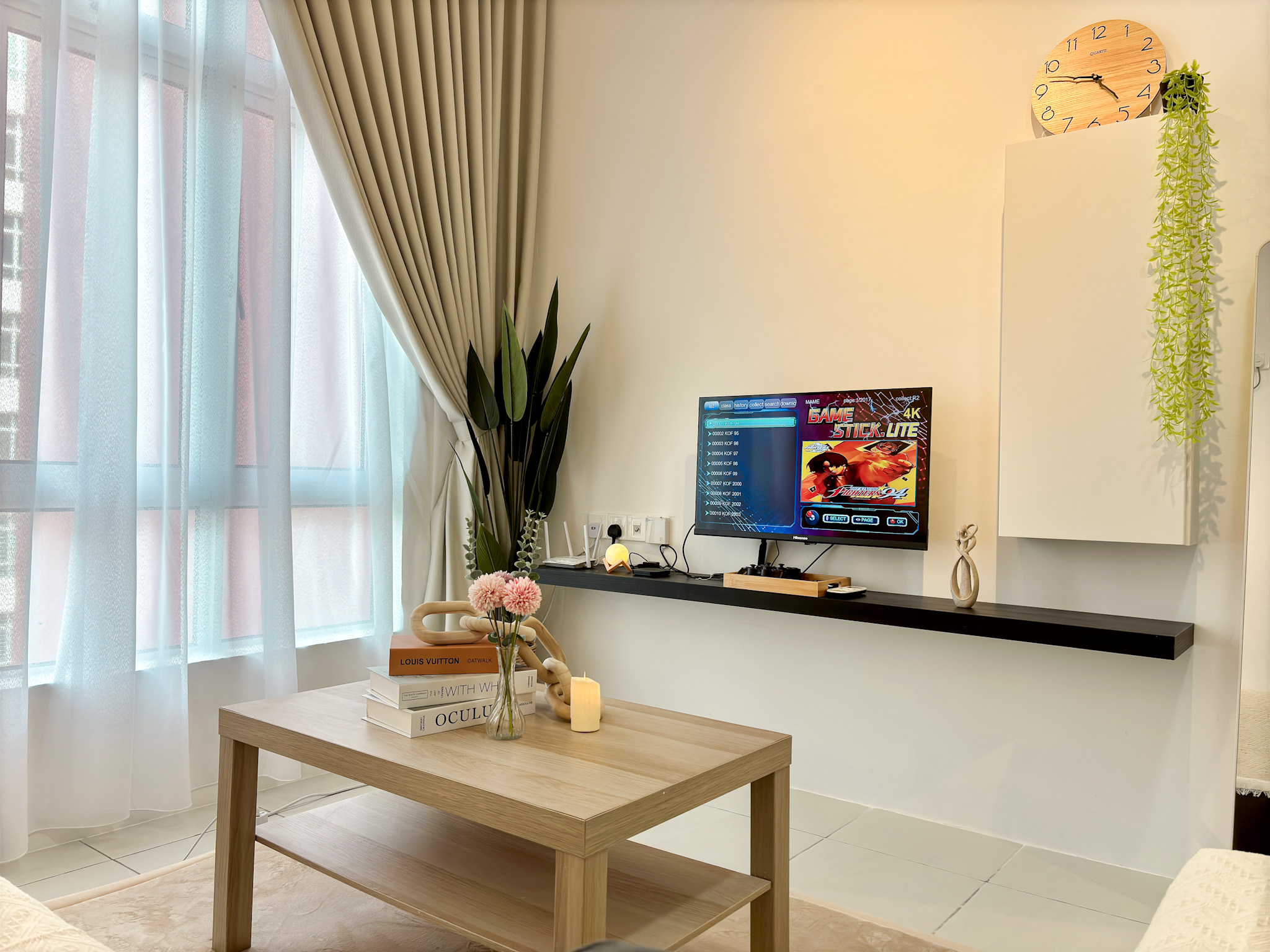 This 3-bedroom, 2-bathroom stay is conveniently located just3 minutes to AEON Kinta City, Lotus Bercham, McDonald’s, the Tuesday night market, and highway access, 13 minutes to Ipoh Parade and Lost World of Tambun, and 17 minutes to Sultan Azlan Shah Airport. Guests have full access to all bedrooms and public areas, along with a wide range of facilities including 24-hour security, swimming pool, Gym, squash room, dance room kids’ pool and playground, tennis court, basketball hall, and kids’ playroom (facilities close at 10pm).