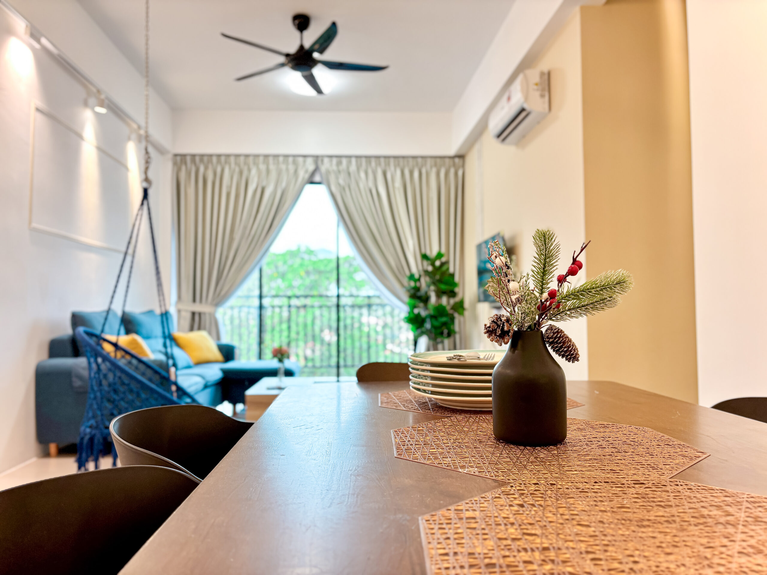 The Cove Hillside Residence Ipoh by PLY Home offers spacious and modern accommodation with 3 bedrooms, 2 bathrooms, a cozy living room, and dining area—perfect for families or group stays. Guests enjoy top-notch facilities including a scenic swimming pool, sauna, garden, and full WiFi coverage. The unit is well-equipped with air-conditioning, kitchenette, balcony, washing machine, and free toiletries, plus access to a lift, waterpark, EV charging station, and 24-hour security. Conveniently located near AEON Mall Kinta City and Lost World of Tambun, it’s just 9 km from Sultan Azlan Shah Airport.